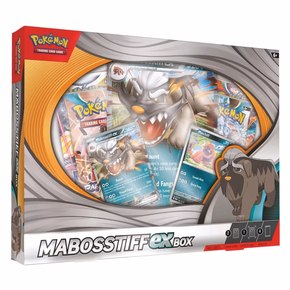 Pokemon Mabostiff ex Collection box 299 kr Inte tillgänglig just nu – bevaka produkten Leverantör: Pokémon Information Recensioner I denna box får du utöver de glittrande Mabosstiff ex promokorten, även en mångfald av booster packs från olika expansioner, som ger dig chansen att bredda din samling med nya och kraftfulla kort!Pokémon TCG: Mabosstiff ex Collection Box detaljer:4st Pokémon Booster Packs1st Jumbo Mabosstiff ex kort1st Mabosstiff ex kort1st Maschiff kort1st Kod-kort för Pokémon Trading Card Game Live