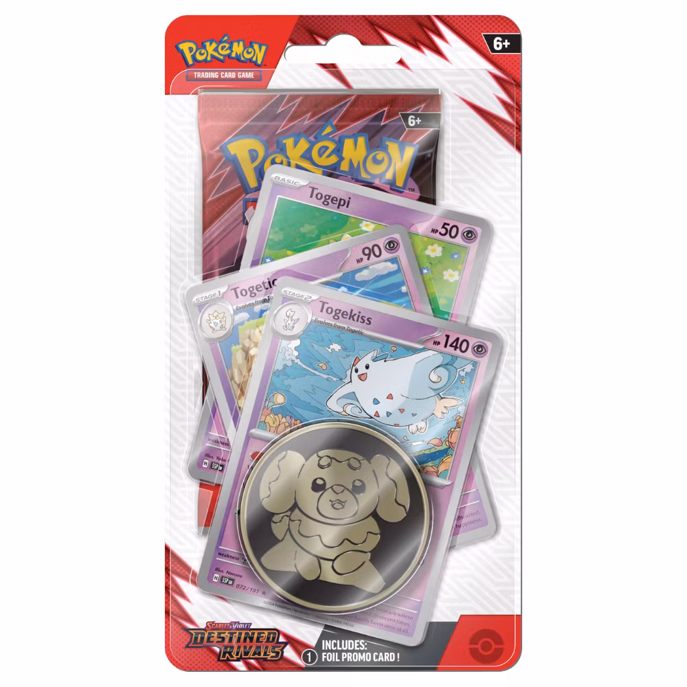Pokémontränare, var på er vakt! Det lömska Team Rocket sätter sin senaste plan i verket, och hjältetränare skyndar för att stoppa dem. Gå samman med mästare som Cynthia och Garchomp ex, Ethan och Ho-Oh ex eller Arven och Mabosstiff ex… Eller ompröva din lojalitet och kämpa vid Team Rockets sida med Pokémon som Mewtwo ex – under Giovannis befäl! Välj en sida, samla dina allierade och kämpa modigt i Pokémon TCG: Scarlet & Violet—Destined Rivals-expansionen!
